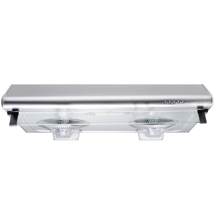 这款 30 英寸宽的不锈钢柜下抽油烟机是您厨房的耐用伴侣。该装置配有一对强大的电机、机械按钮、两个圆形过滤器和一个白炽灯,将把您的烹饪体验提升到一个新的水平。